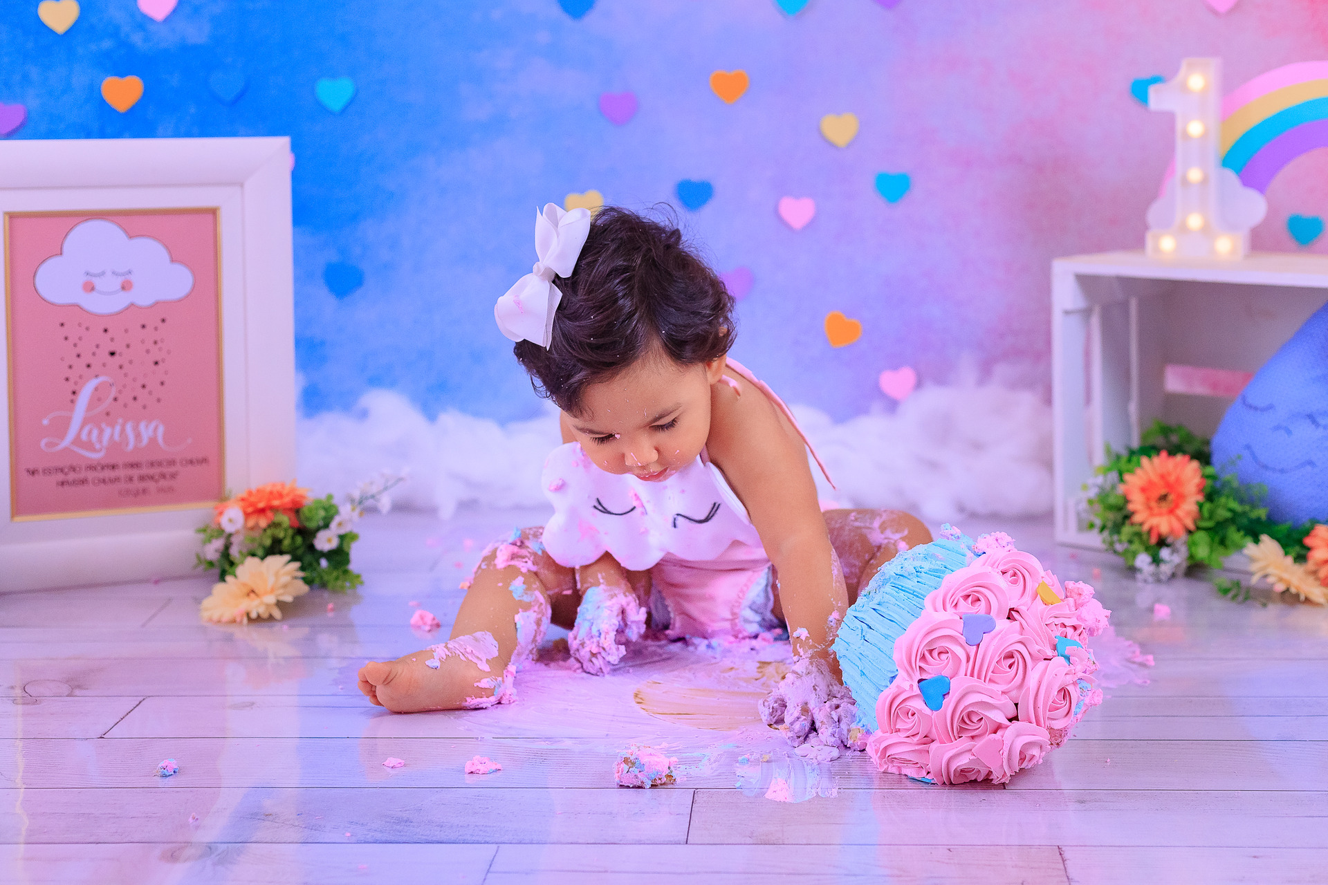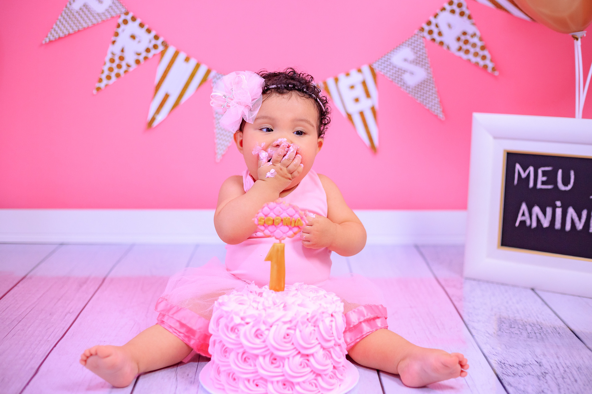 O ensaio smash the cake foi criado para comemorar o primeiro ano de vida do bebê.