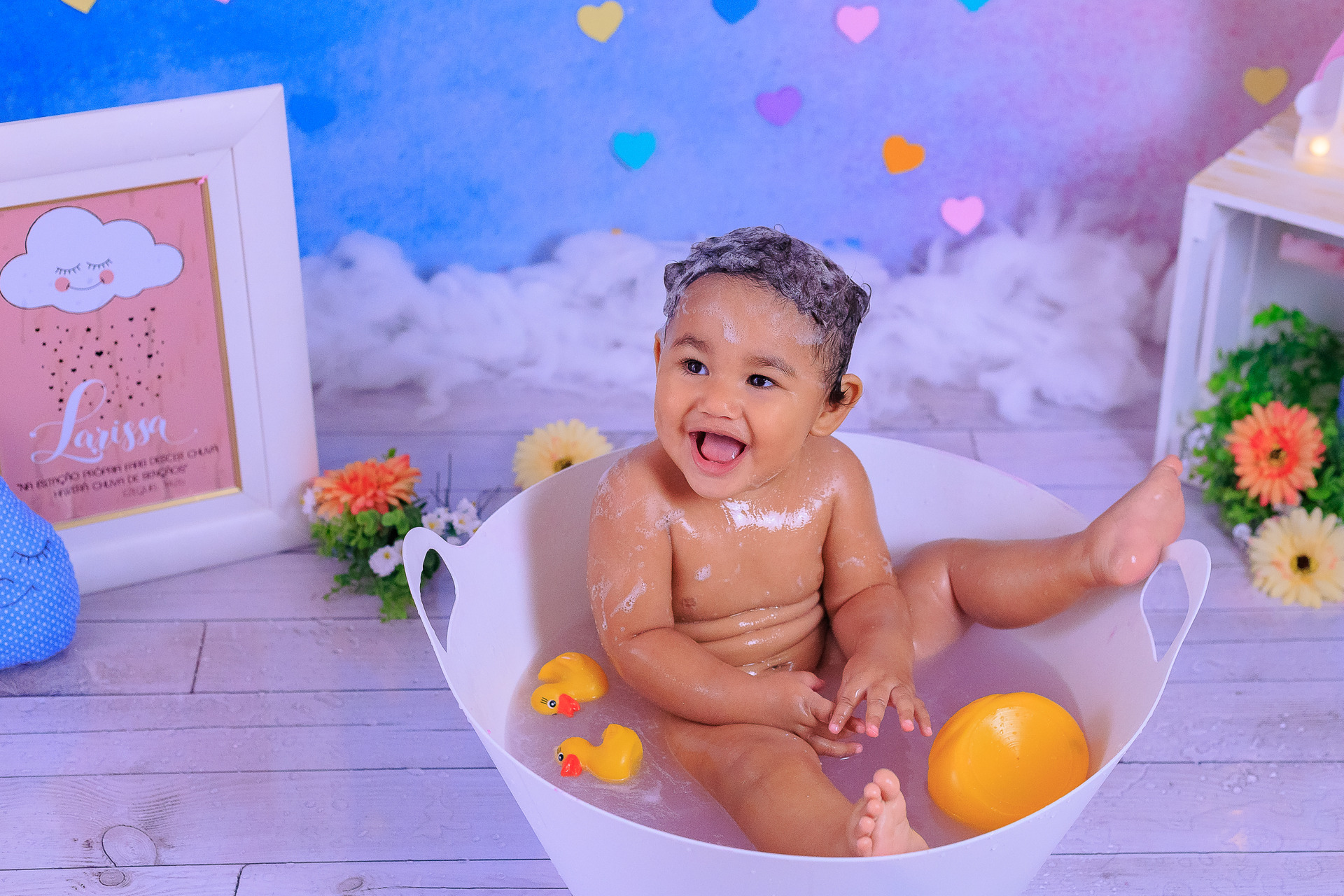 O intuito desse momento no ensaio é proporcionar um alivio para a criança que estará suja, possibilitando assim ela ir embora limpinha e conseguir descansar para repor a suas energias que foram gastas na hora do ensaio.