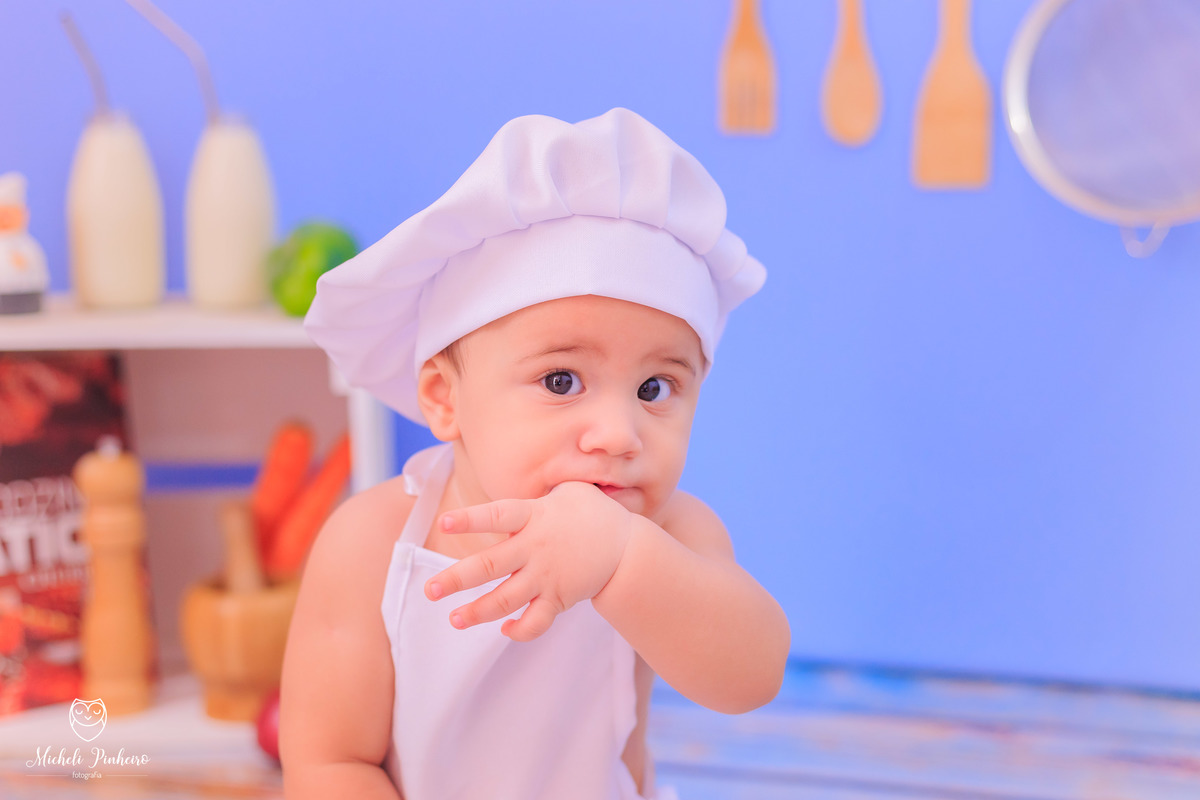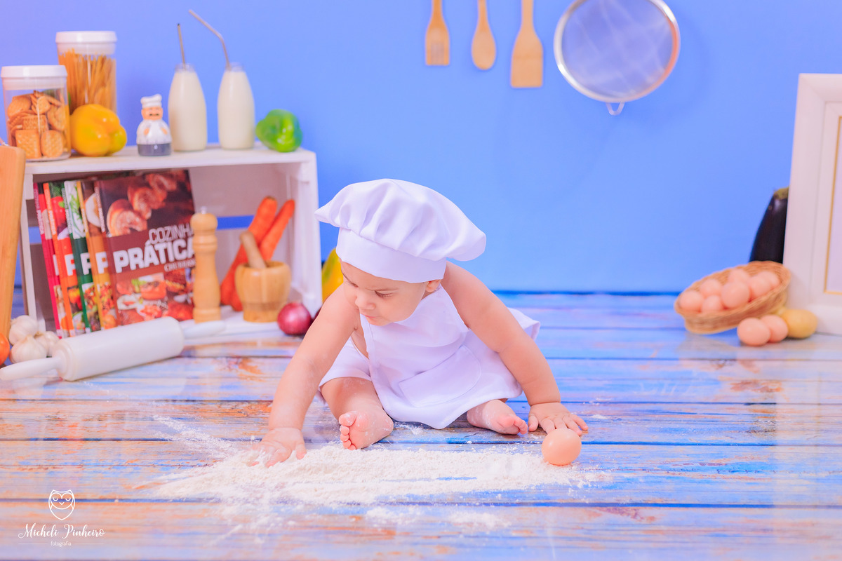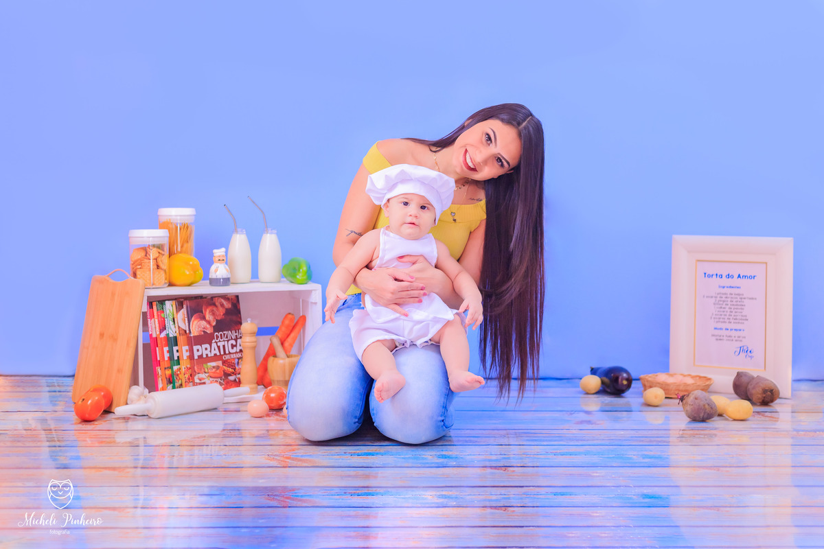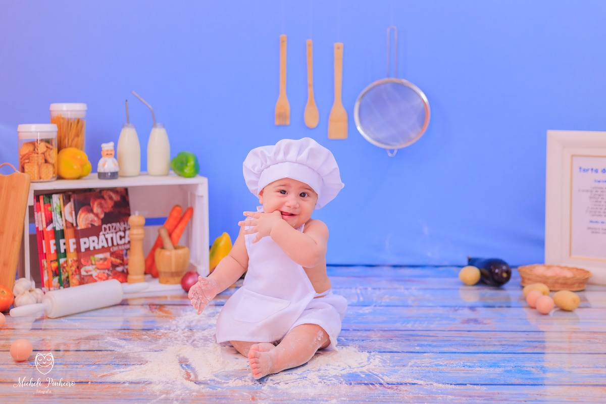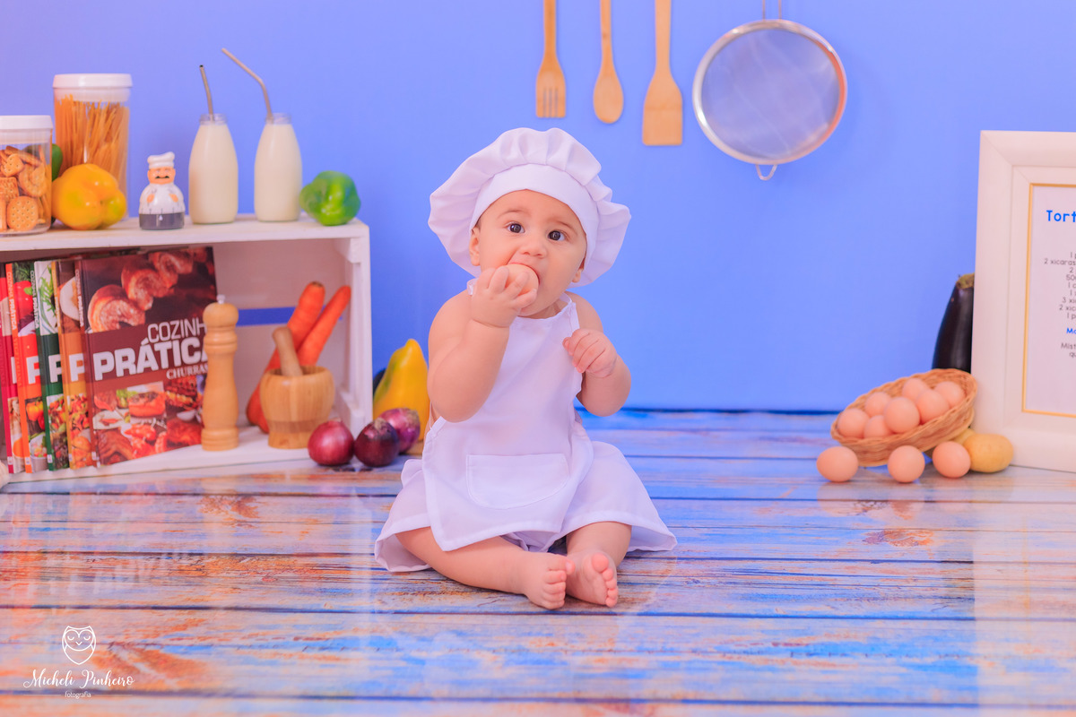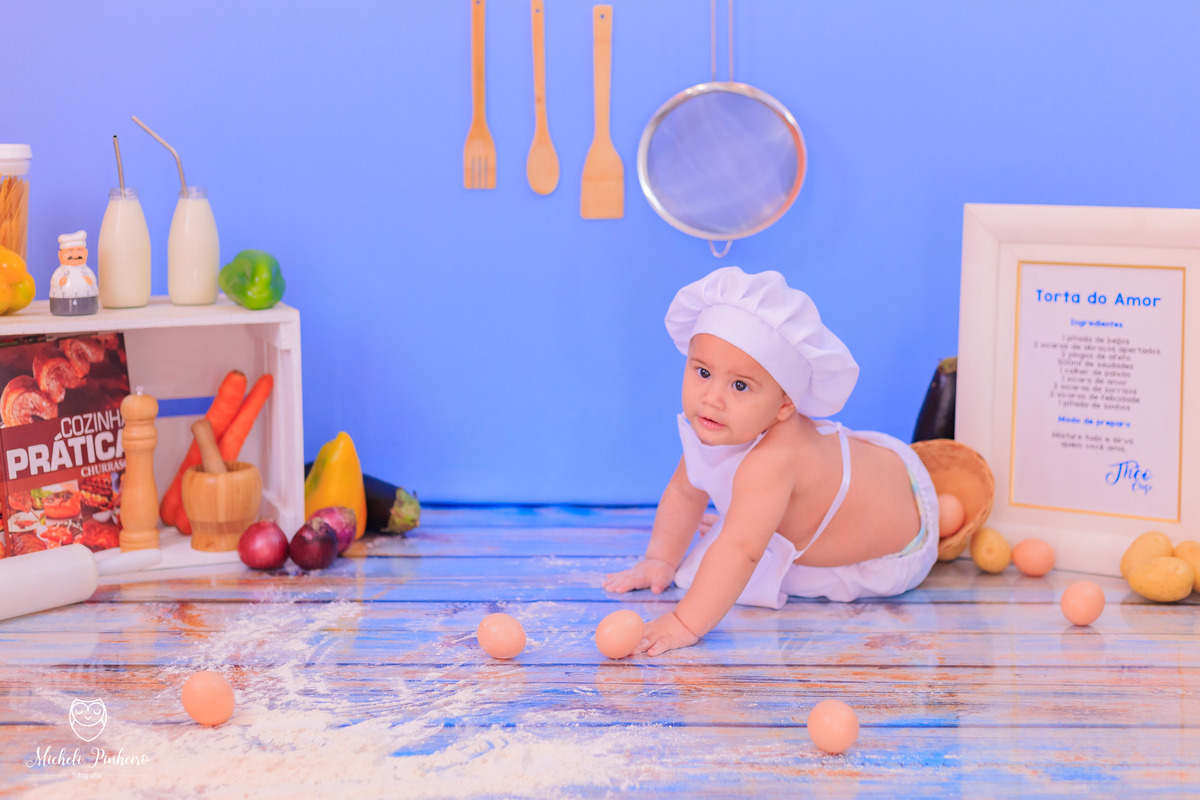Já chegamos no 7º mês de acompanhamento do Théo, e o tema escolhido pela mamãe Dalila foi mestre cuca.