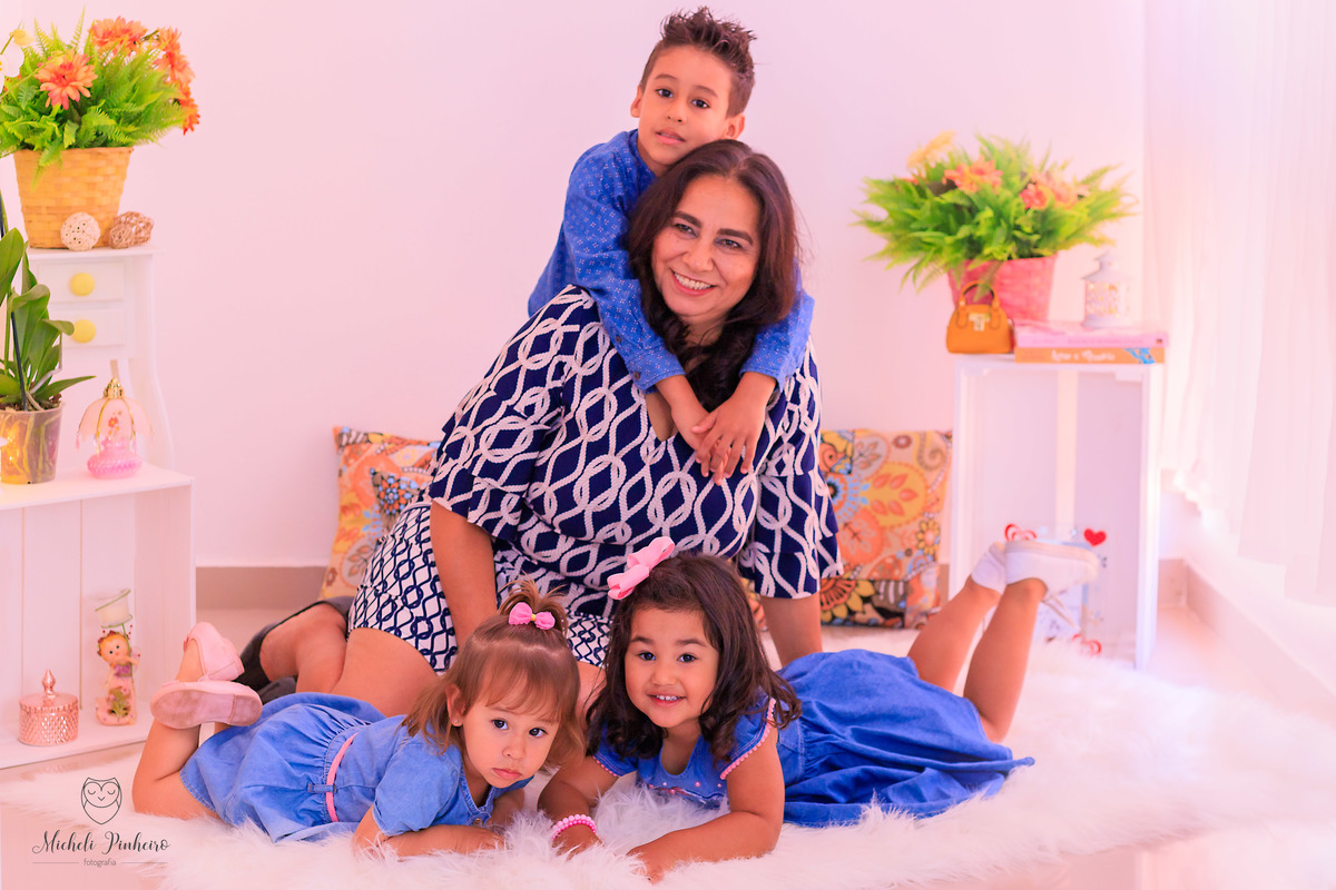 Quem nunca ouviu, digo agora, sim vó é mãe duas vezes, por isso na nossa mini sessão não poderia faltar fotos da vovó com os netos.