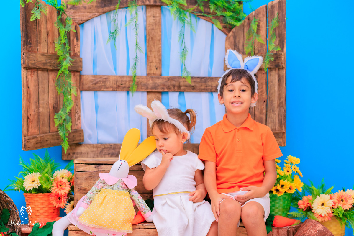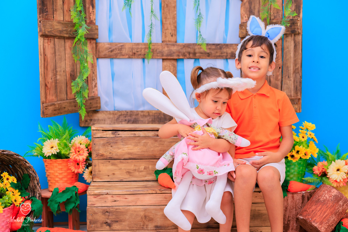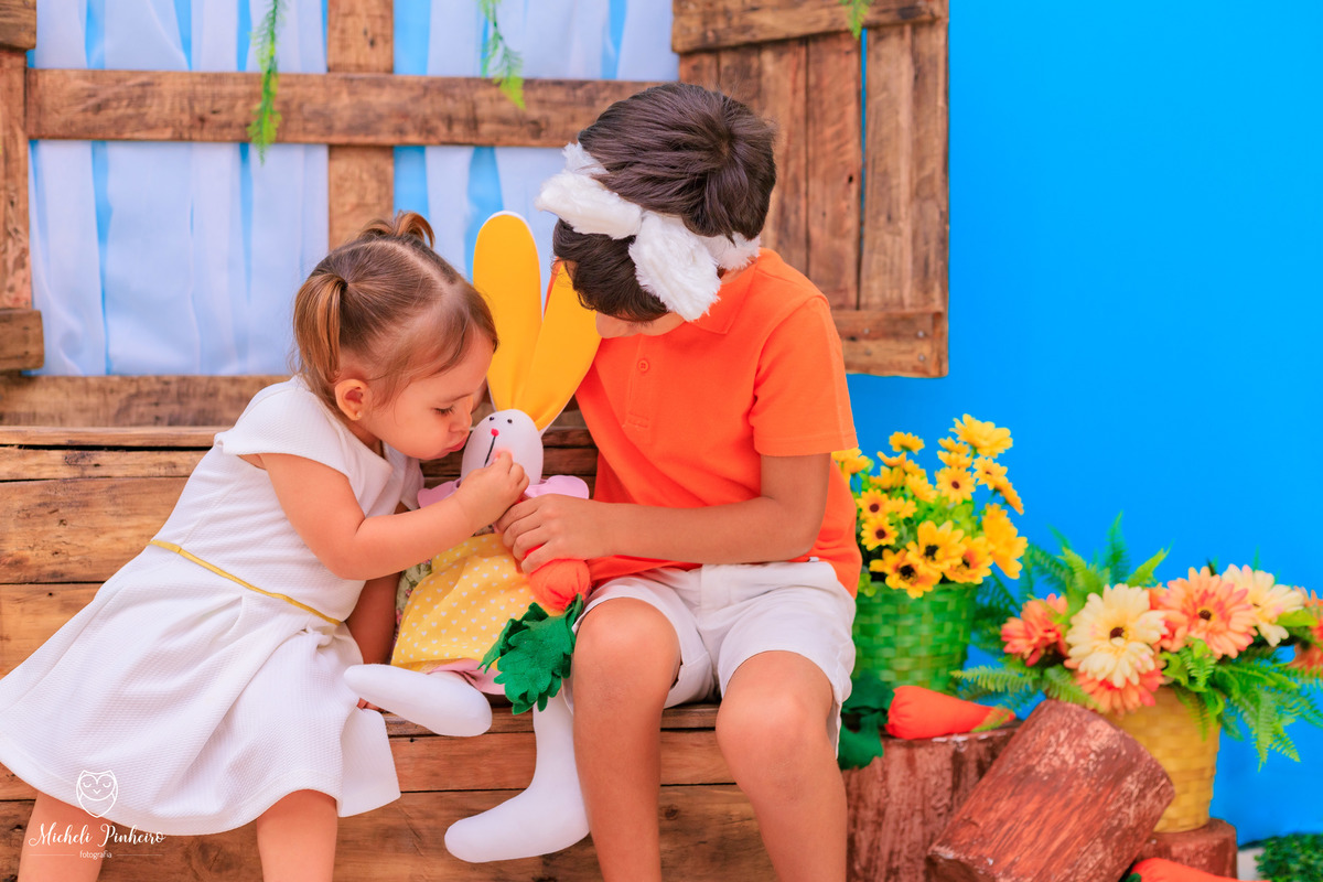 Mini sessão de páscoa - Irmãos Cauã e Bianca Luz