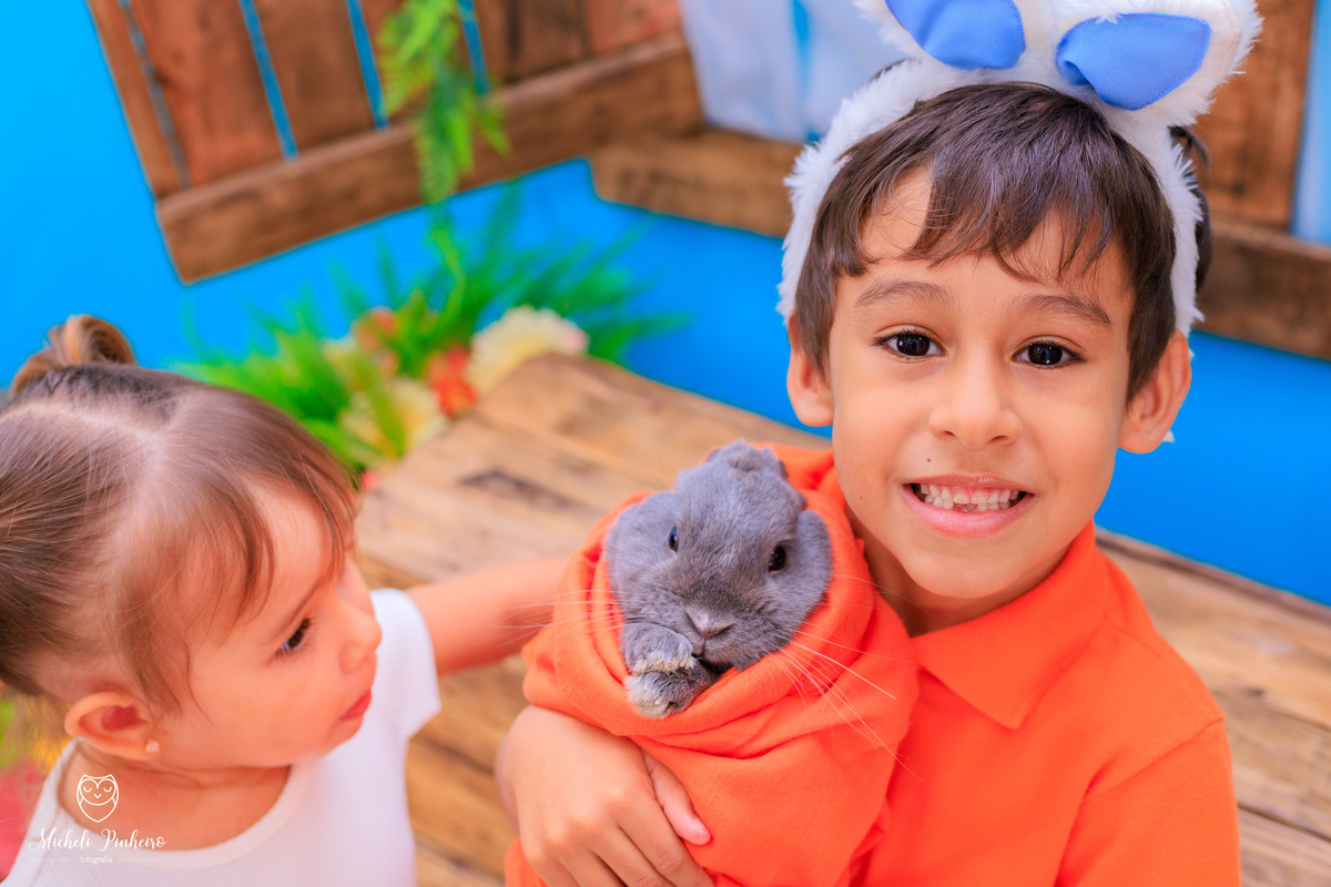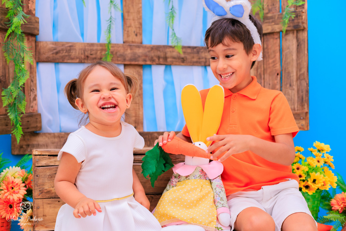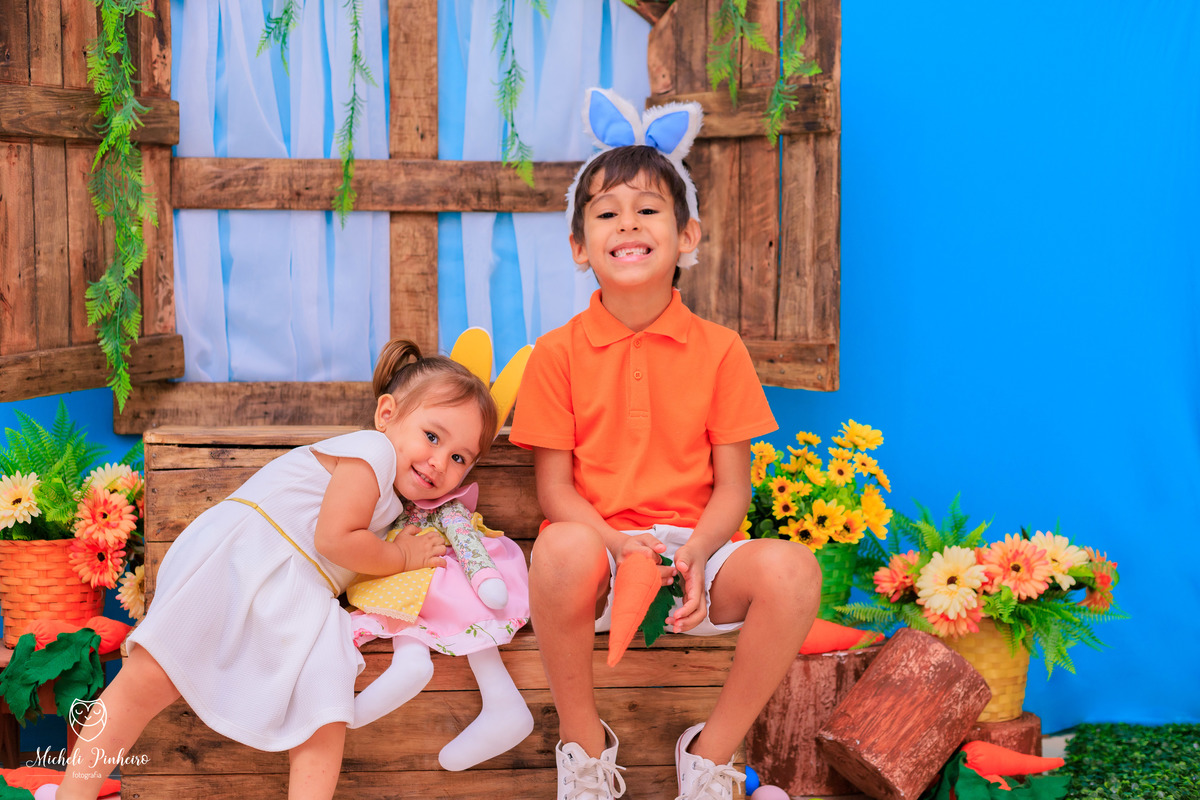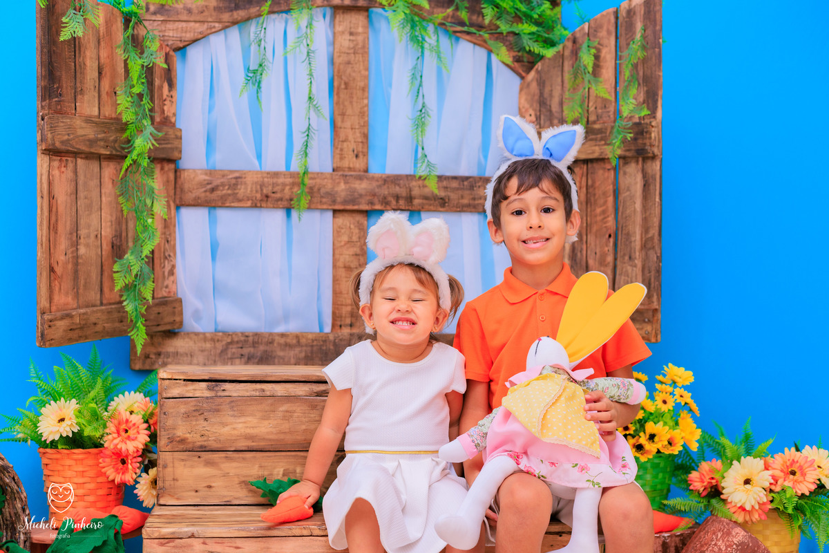 Mini sessão de páscoa - Irmãos Cauã e Bianca Luz